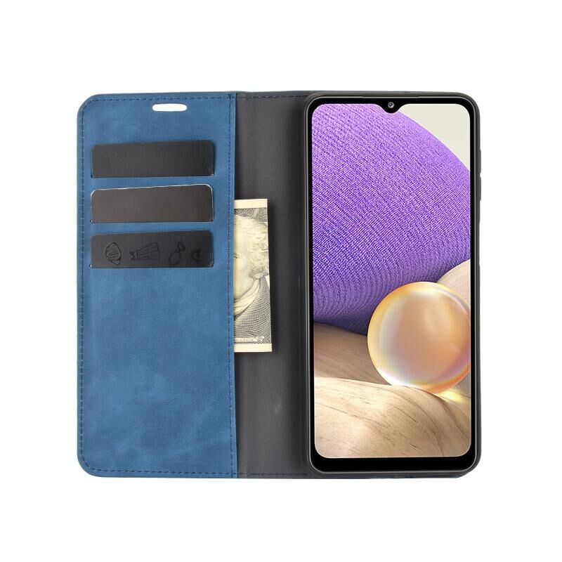 Για Samsung Galaxy A32 5G Retro-skin Business Μαγνητική δερμάτινη θήκη αναρρόφησης με θήκη & υποδοχές καρτών & πορτοφόλι (Σκούρο μπλε)
