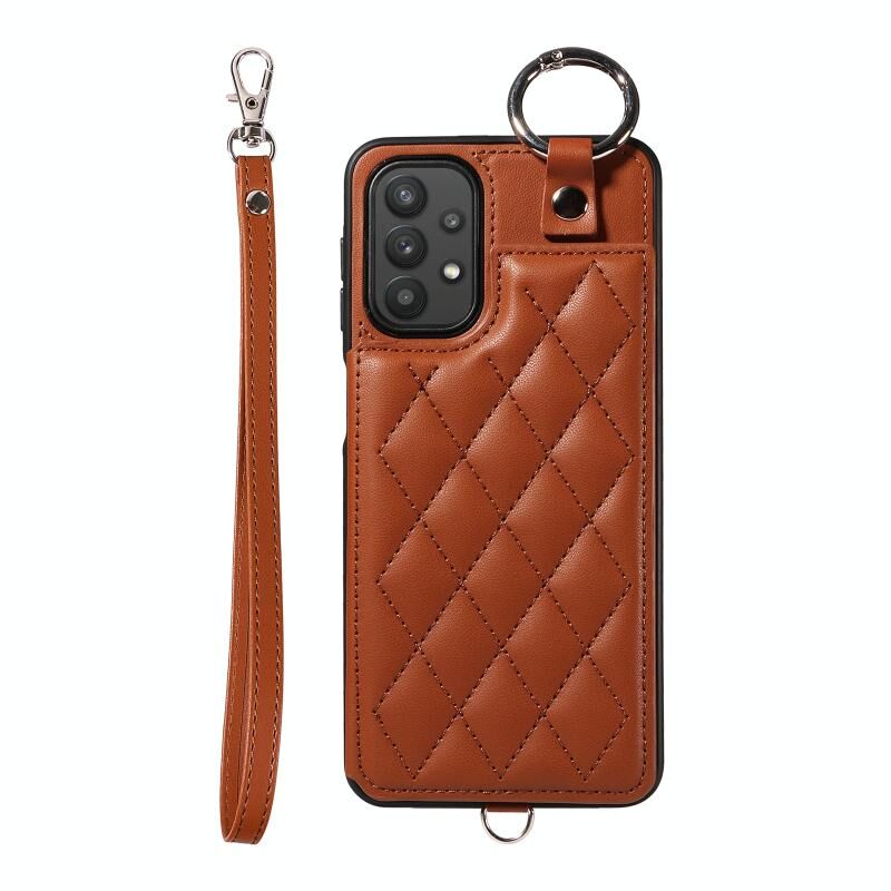 Για Samsung Galaxy A32 5G Rhombic υφή κάρτα τσάντα θήκη τηλεφώνου με σύντομο κορδόνι (Καφέ)