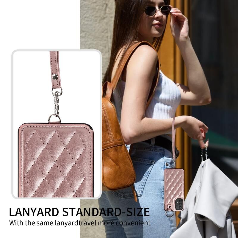 Για Samsung Galaxy A32 5G Ρομβική υφή κάρτα τσάντα θήκη τηλεφώνου με σύντομο κορδόνι (Rose Gold)