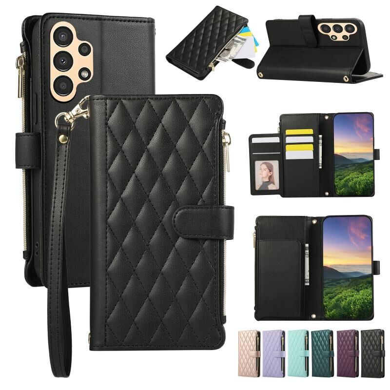 Θήκη τηλεφώνου Samsung Galaxy A32 5G, Δερμάτινη με φερμουάρ και ρόμβους (Μωβ)