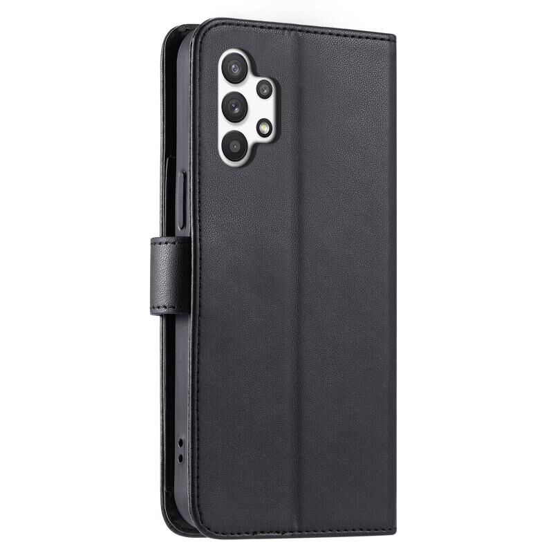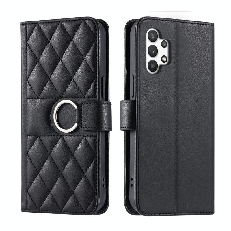 Για το Samsung Galaxy A32 5G δαχτυλίδι πόρπη ρομβοειδής δερμάτινη θήκη τηλεφώνου (Μαύρο)