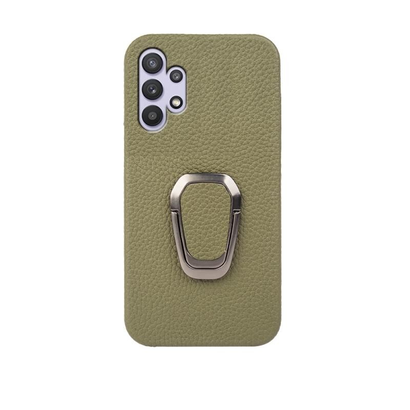 Θήκη κινητού τηλεφώνου Samsung Galaxy A32 5G με δακτύλιο και γνήσιο δέρμα υφής λύτσι (Λευκό)