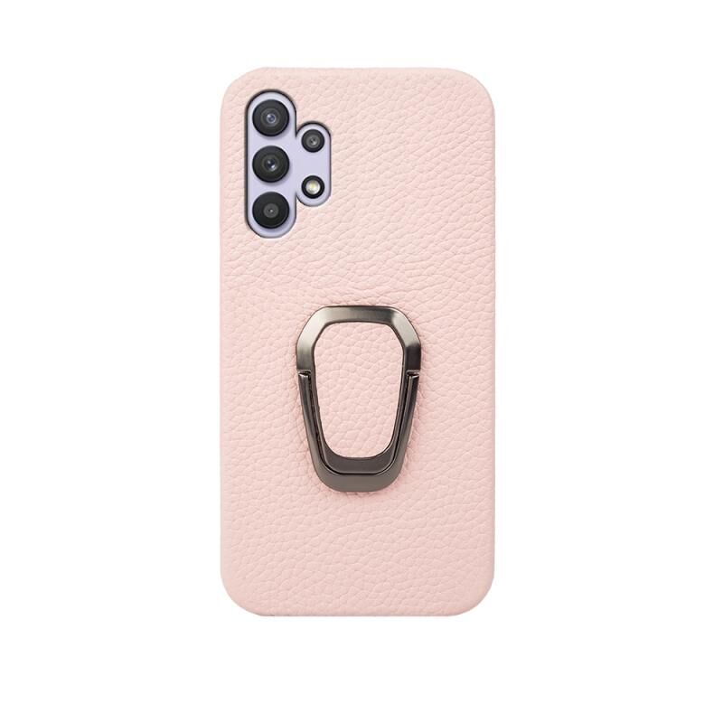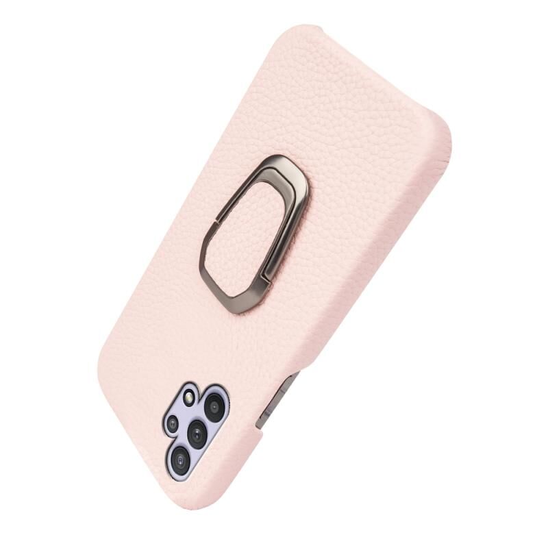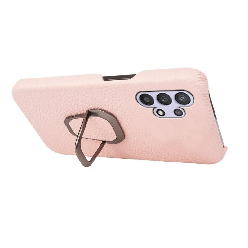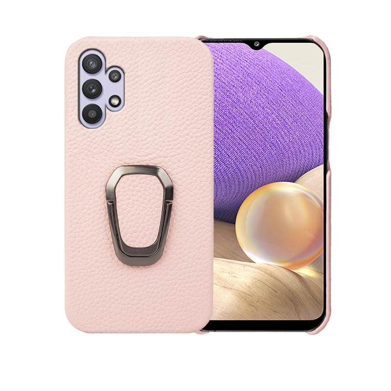 Θήκη κινητού τηλεφώνου Samsung Galaxy A32 5G με δακτύλιο και γνήσιο δέρμα υφής λύτσι (Λευκό)