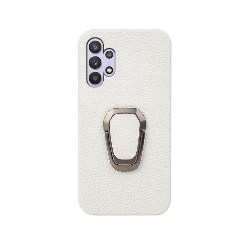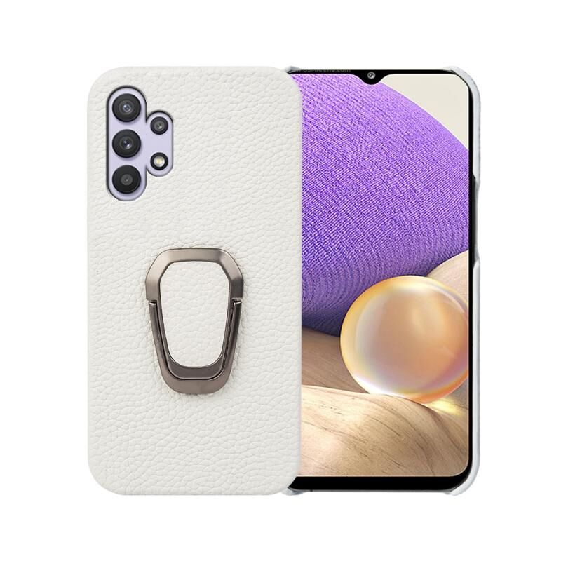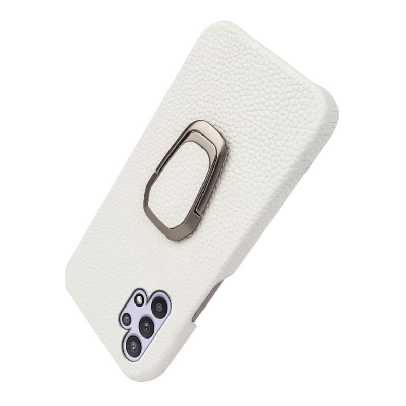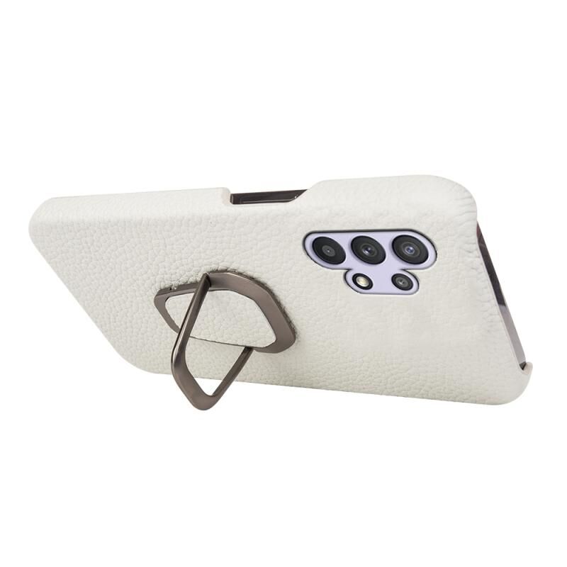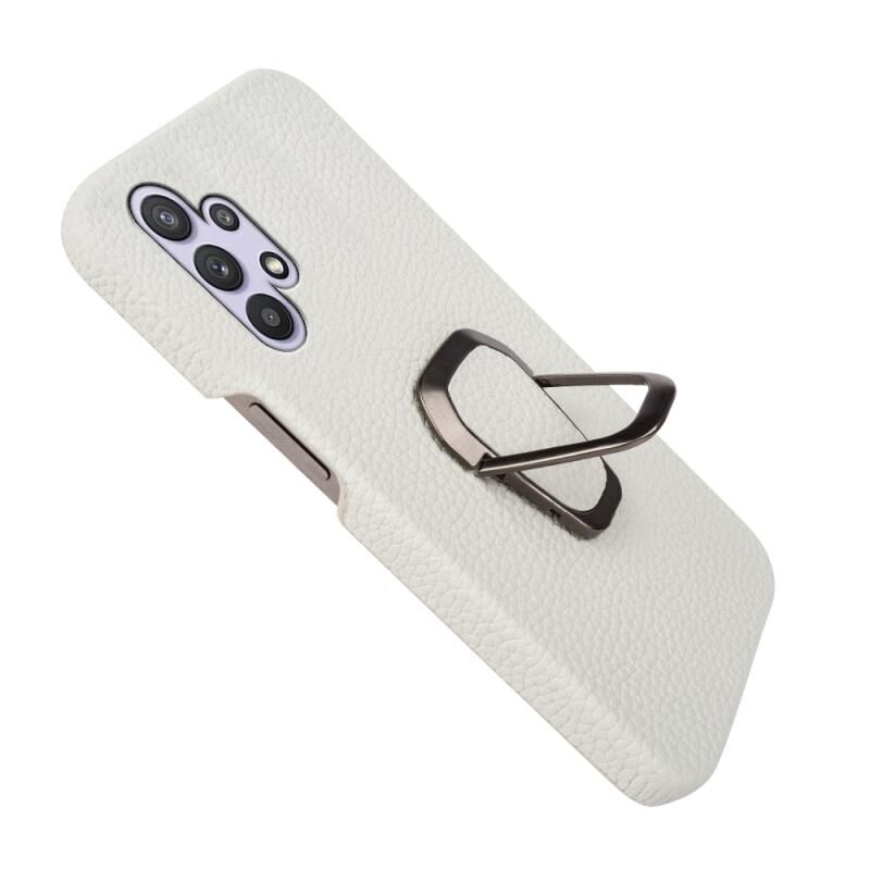 Θήκη κινητού τηλεφώνου Samsung Galaxy A32 5G με δακτύλιο και γνήσιο δέρμα υφής λύτσι (Λευκό)