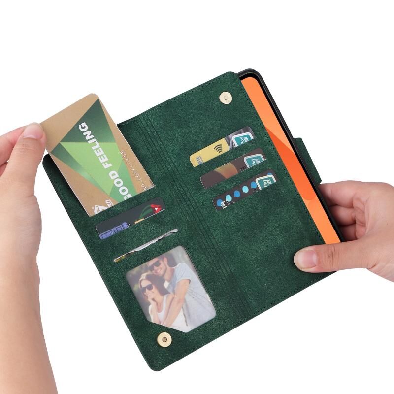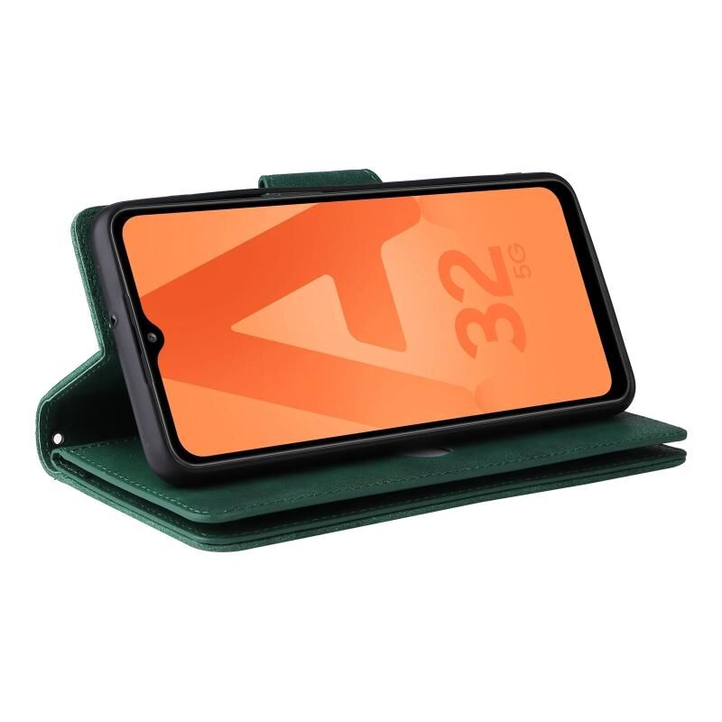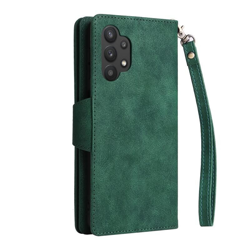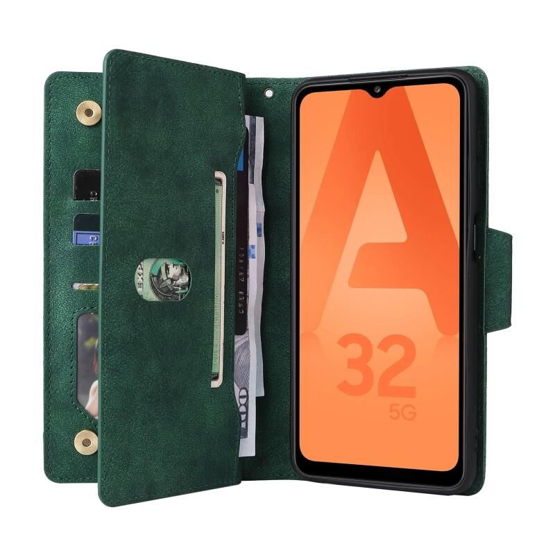 Για Samsung Galaxy A32 5G 5G Rivet πόρπη 9 κάρτες τρεις φορές δερμάτινη θήκη τηλεφώνου (πράσινο)