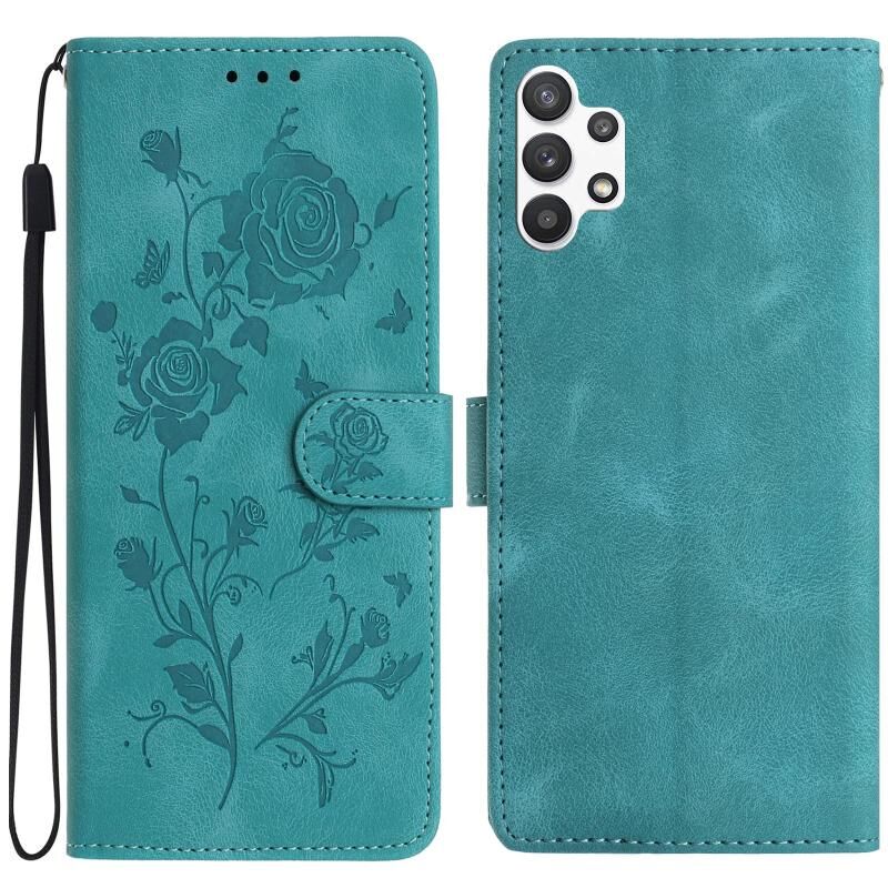 Θήκη τηλεφώνου δερμάτινη με ανάγλυφο σχέδιο ροζ άνθους για Samsung Galaxy A32 5G (Ροζ Χρυσό)