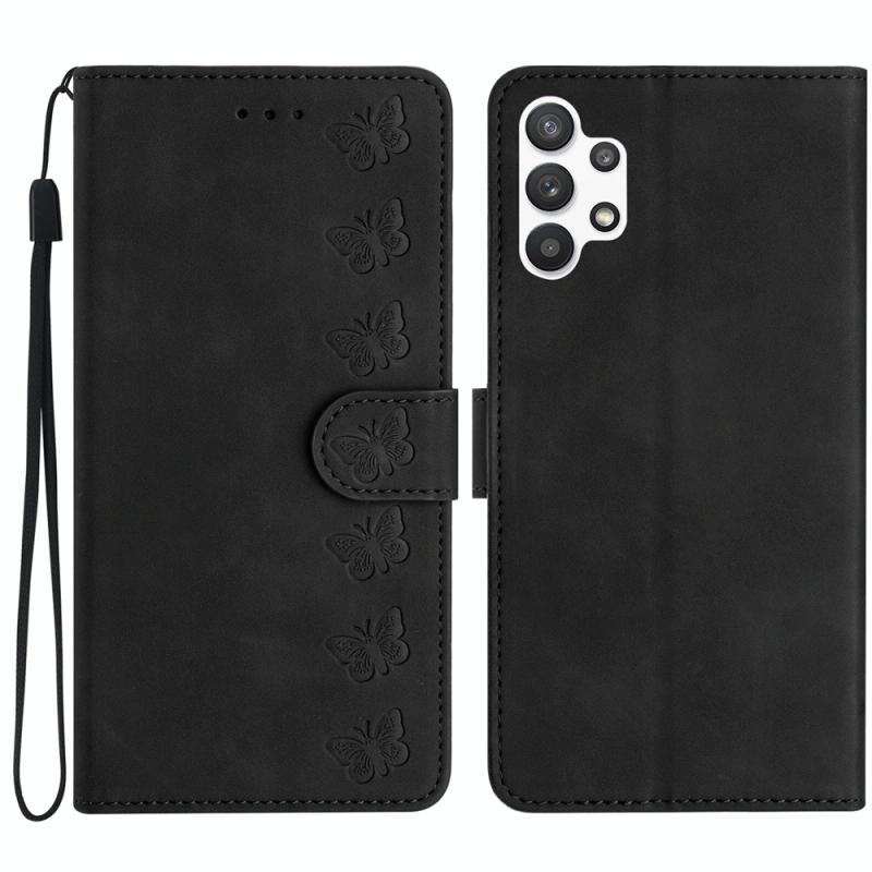 Θήκη τηλεφώνου Samsung Galaxy A32 5G Seven Butterflies, δερμάτινη ανάγλυφη (Μαύρο)
