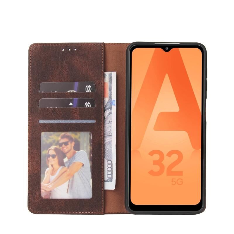 Για το Samsung Galaxy A32 5G Απλό κλείσιμο αναρρόφησης Οριζόντια Flip δερμάτινη θήκη με θήκη & υποδοχή για κάρτες & πορτοφόλι (καφέ)