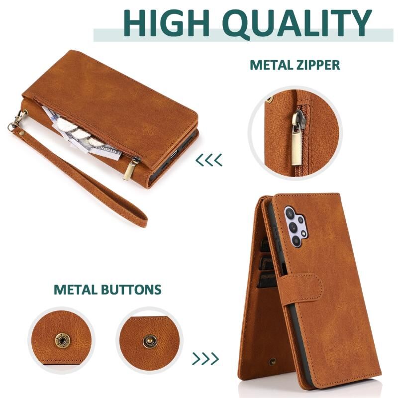 Για Samsung Galaxy A32 5G Skin-feel Crazy Horse υφή φερμουάρ πορτοφόλι τσάντα οριζόντια Flip δερμάτινη θήκη με κάτοχο & υποδοχές για κάρτες & πορτοφόλι & Lanyard (καφέ)