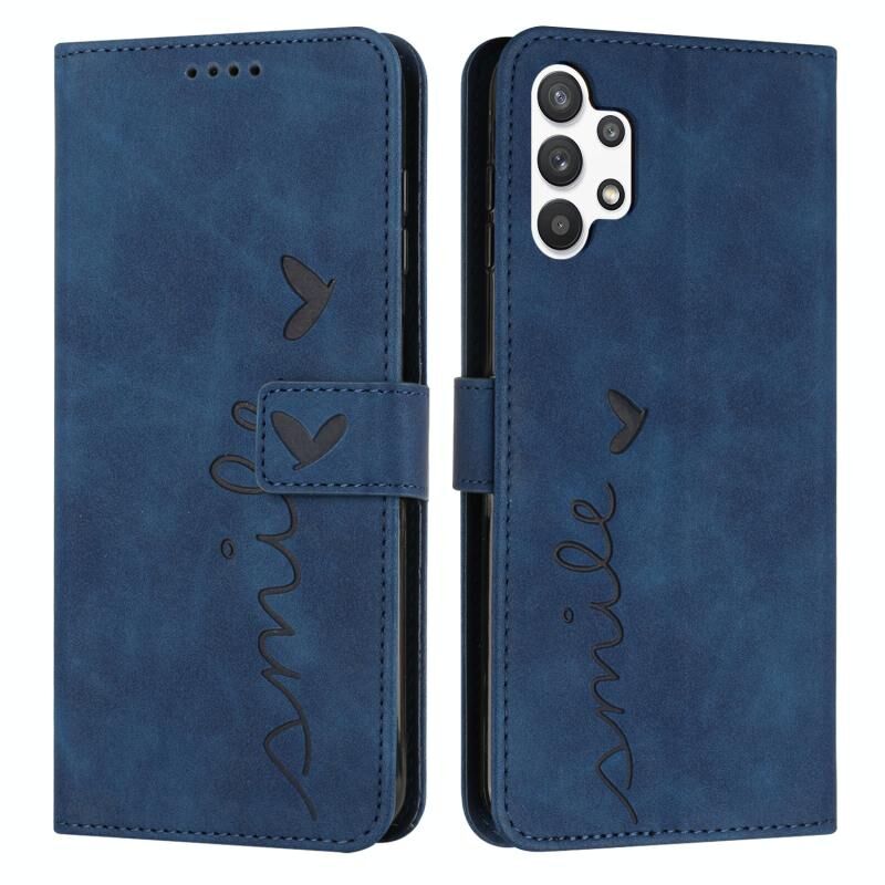 Για Samsung Galaxy A32 5G δέρμα αίσθηση καρδιά μοτίβο δερμάτινη θήκη τηλεφώνου (μπλε)