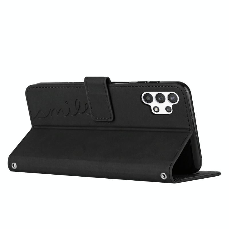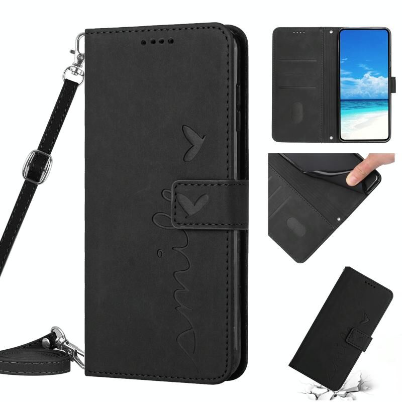 Για Samsung Galaxy A32 5G δέρμα αίσθηση καρδιά μοτίβο δερμάτινη θήκη τηλεφώνου με κορδόνι (μαύρο)