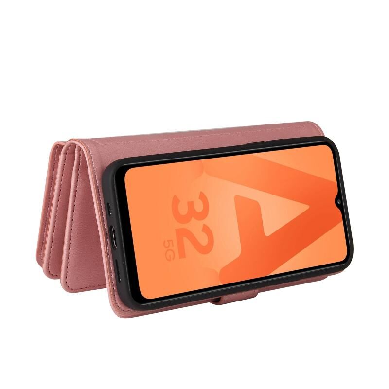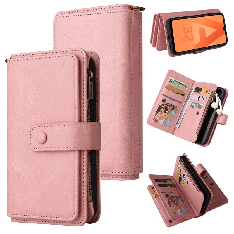 Για Samsung Galaxy A32 5G δέρμα αίσθηση PU + TPU οριζόντια Flip δερμάτινη θήκη με υποδοχή & 15 κάρτες Slot & πορτοφόλι & φερμουάρ τσέπη & Lanyard (ροζ)