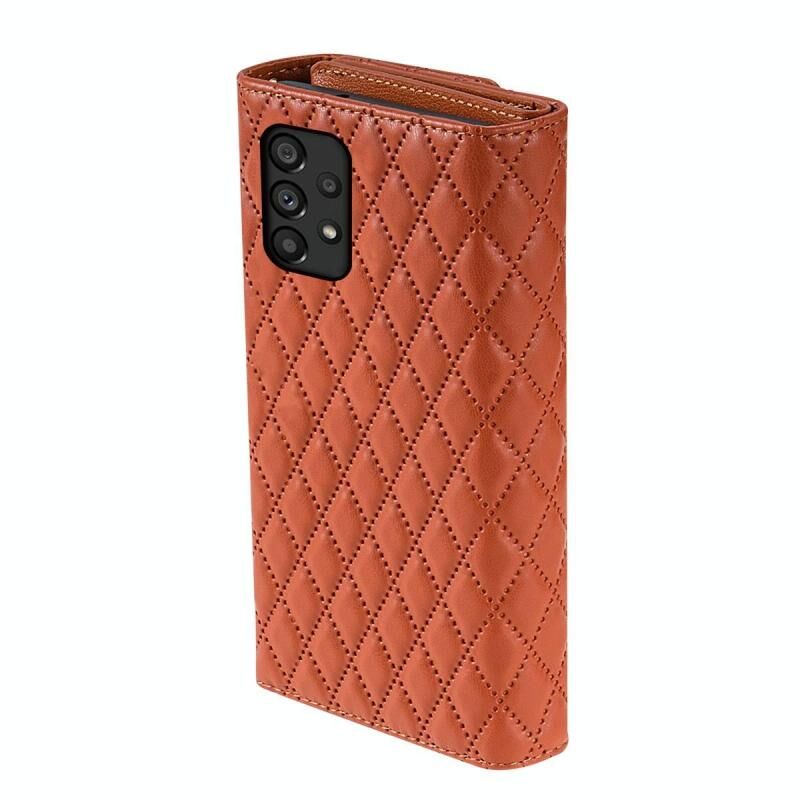 Για Samsung Galaxy A32 5G φερμουάρ πολλαπλών καρτών πορτοφόλι ρομβοειδή δερμάτινη θήκη τηλεφώνου (καφέ)
