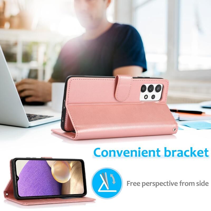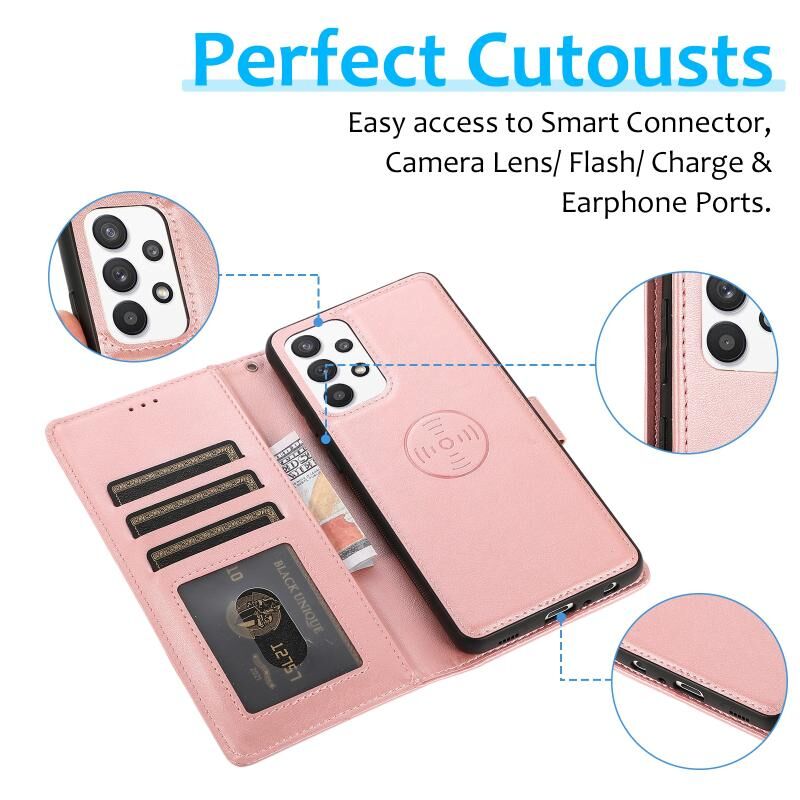 Για Samsung Galaxy A32 Calf Texture 2 σε 1 Αποσπώμενο μαγνητικό πίσω κάλυμμα Οριζόντια Flip δερμάτινη θήκη με θήκη & υποδοχές για κάρτες & πορτοφόλι & κορνίζα φωτογραφιών (Rose Gold)