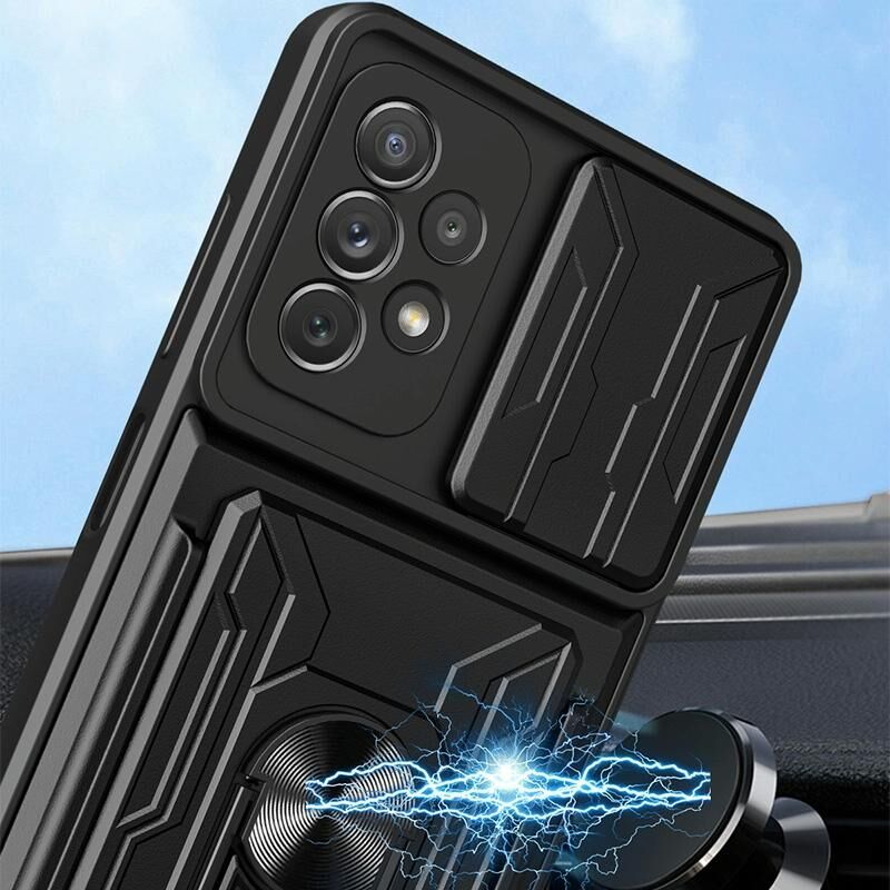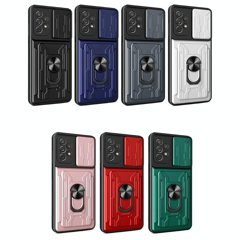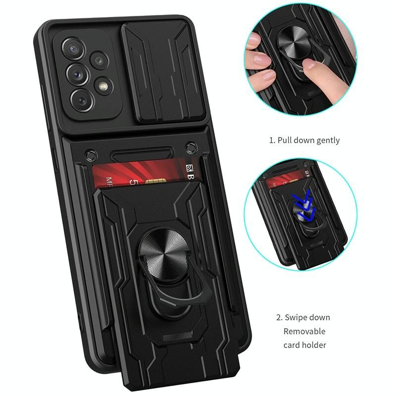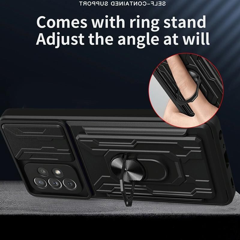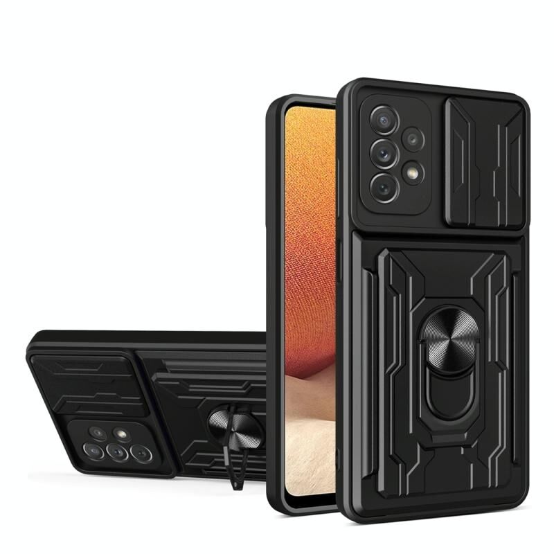 Για Samsung Galaxy A32 Κάμερα κάλυμμα τηλεφώνου θήκη με υποδοχή κάρτας & υποδοχή (Μαύρο)