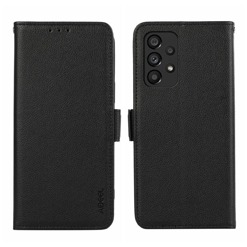 Θήκη κινητού τηλεφώνου Samsung Galaxy A33 5G ABEEL με μαγνητικό κλείσιμο, δερμάτινη με υφή λitchi και προστασία RFID (Μαύρο)