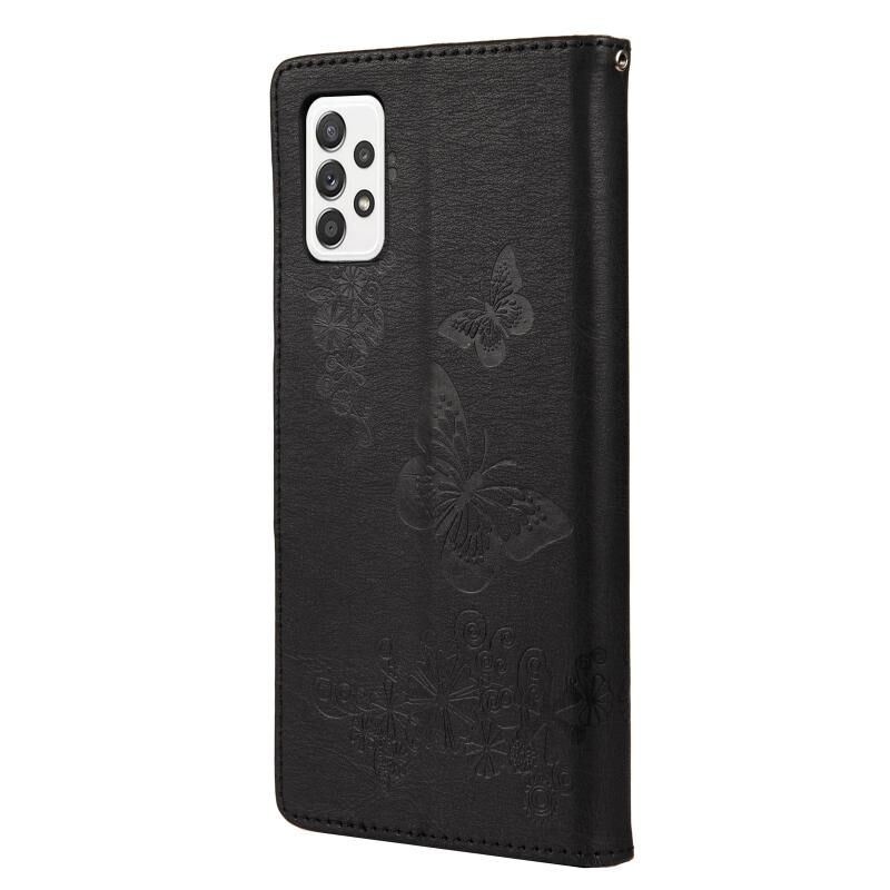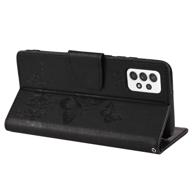 Θήκη τηλεφώνου Samsung Galaxy A33 5G, δερμάτινη οριζόντια με ανάγλυφο σχέδιο πεταλούδας, με θήκη για κάρτες & στήριξη (Μωβ)