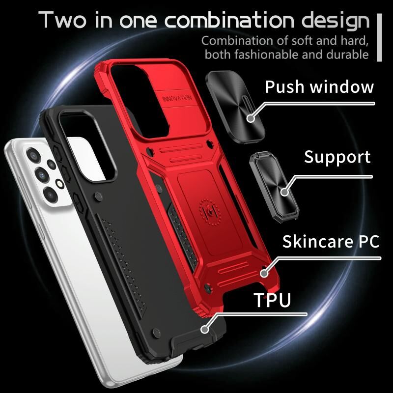 Για Samsung Galaxy A33 5G Camshield ρομπότ TPU υβριδική θήκη τηλεφώνου PC (κόκκινο)