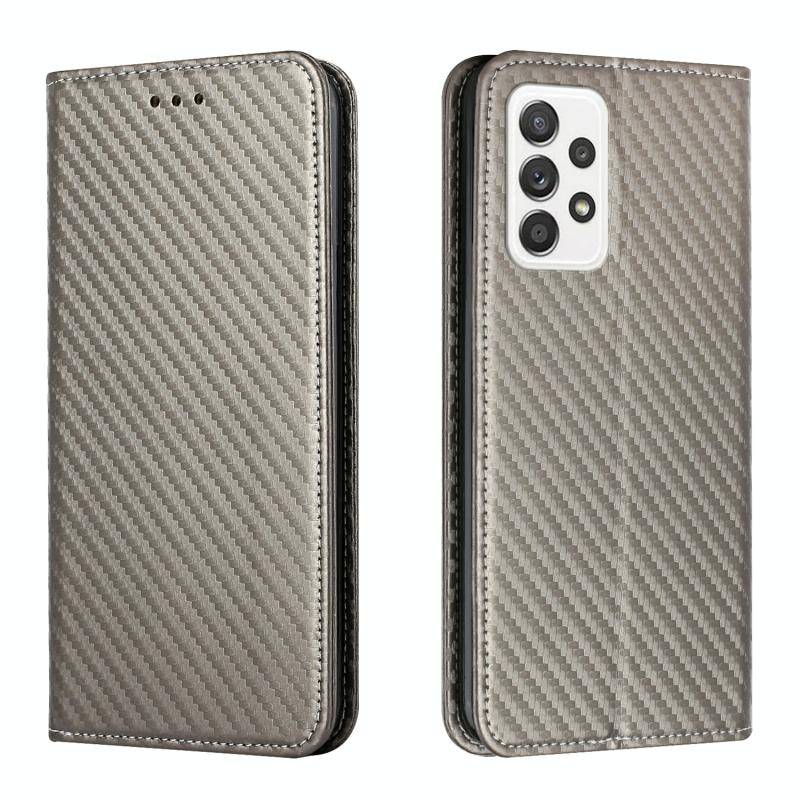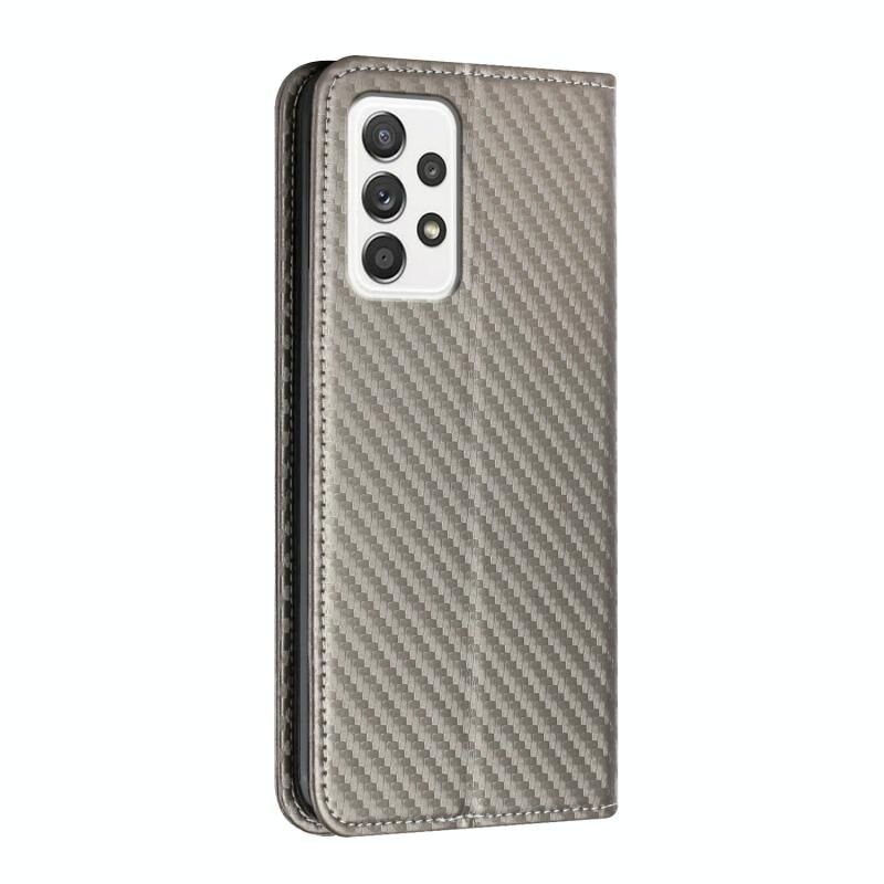 For Samsung Galaxy A33 5G Carbon Fiber Texture Flip Holder Leather Phone Case(Grey)