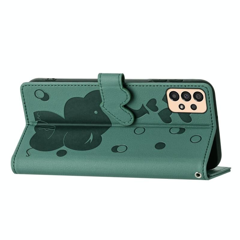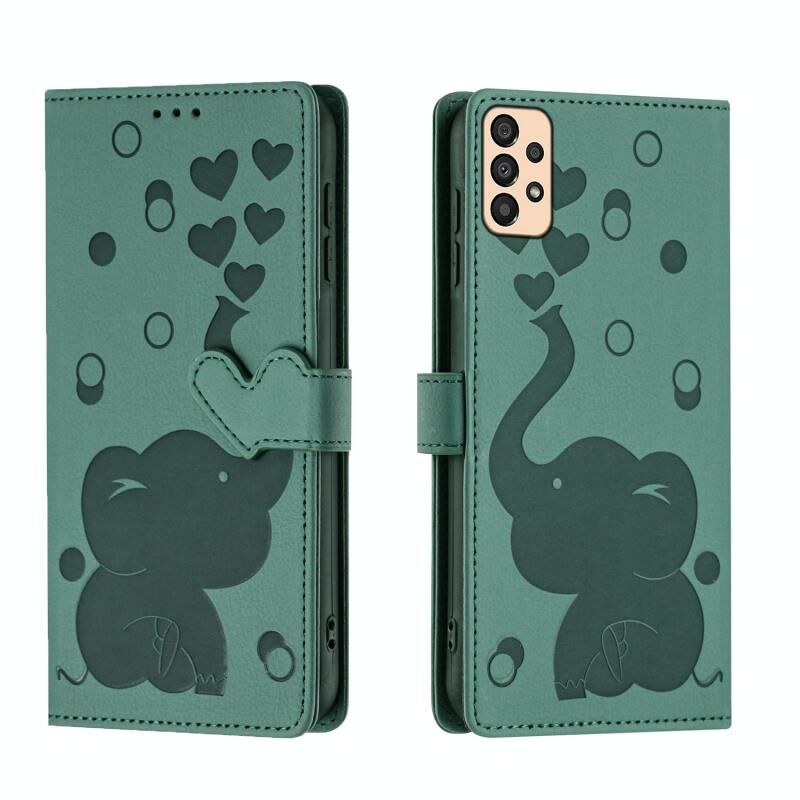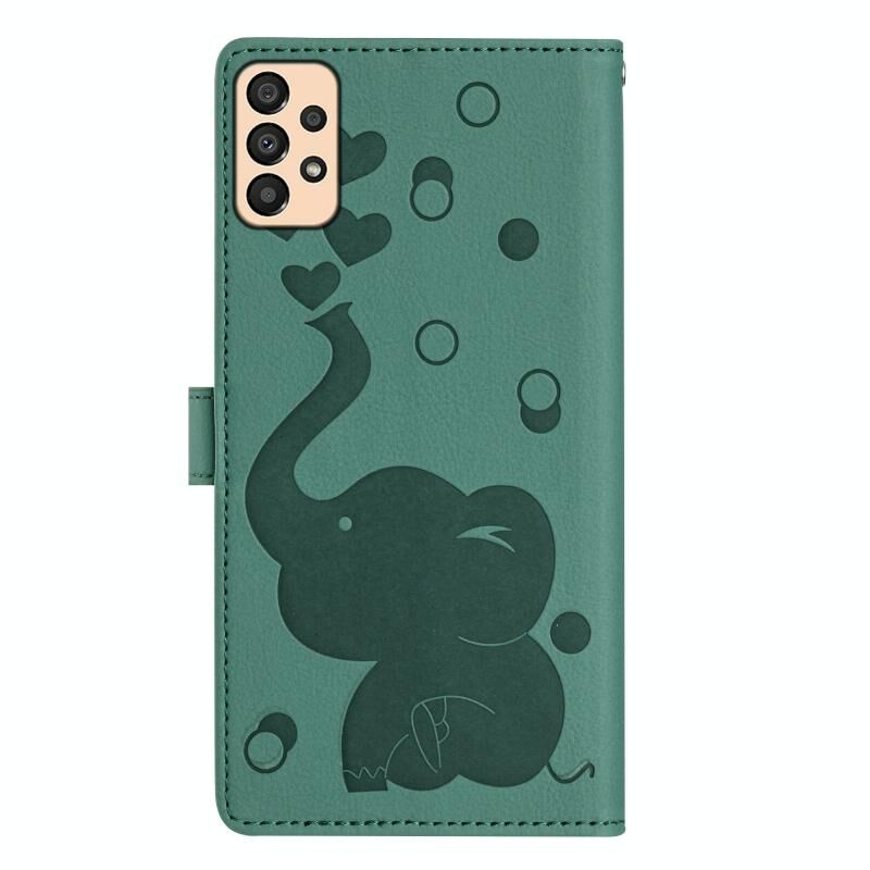 Θήκη τηλεφώνου Samsung Galaxy A33 5G από δέρμα με ανάγλυφο σχέδιο καρτούν ελέφαντα (πράσινο)