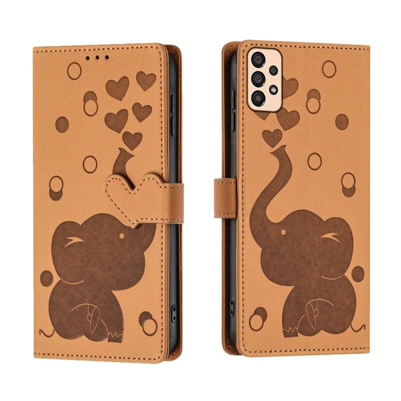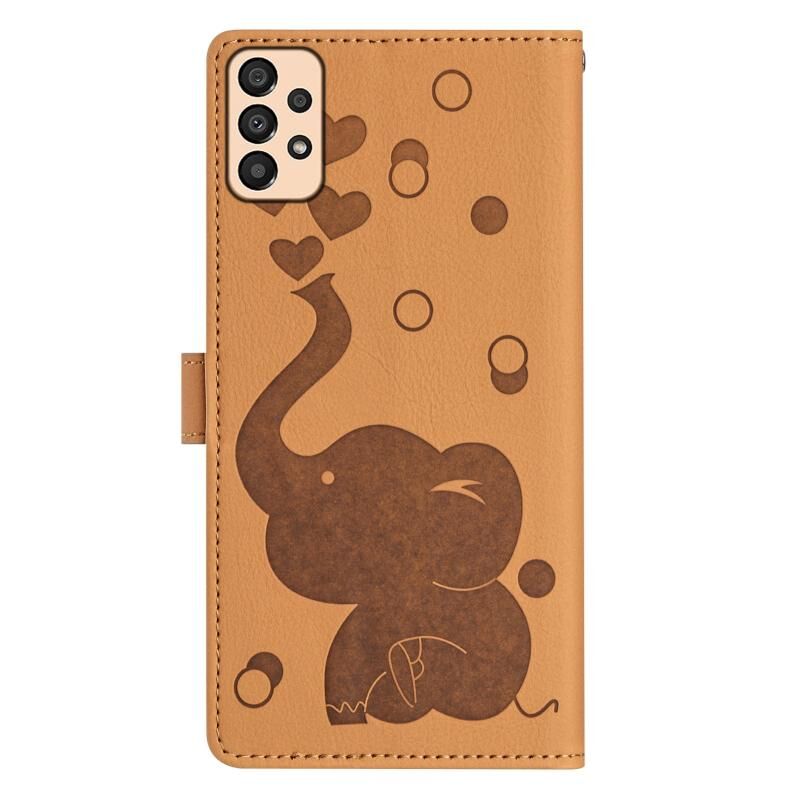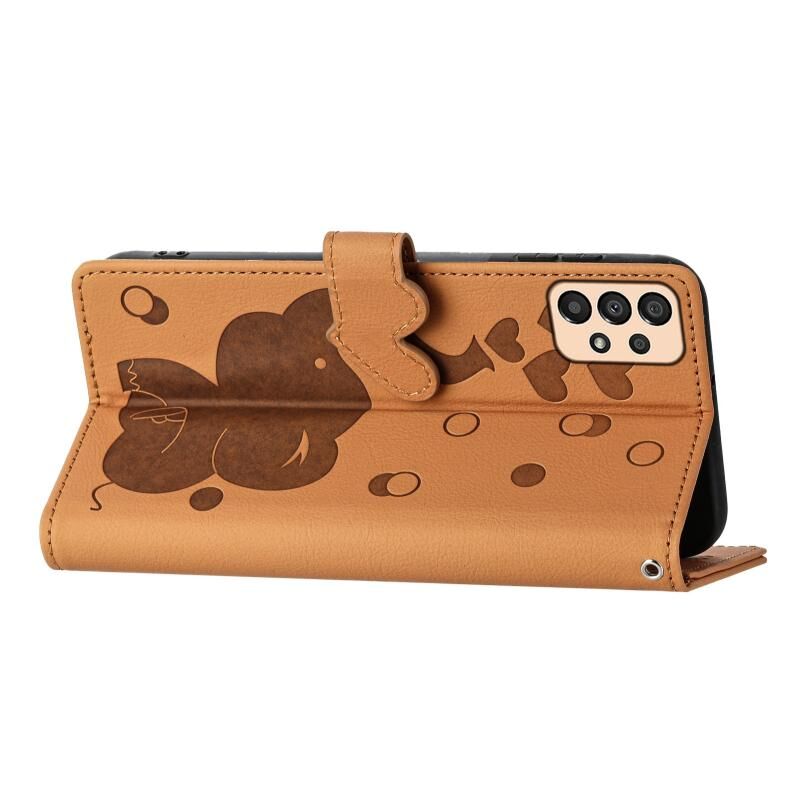 Θήκη τηλεφώνου Samsung Galaxy A33 5G από δέρμα με ανάγλυφο σχέδιο καρτούν ελέφαντα (Κίτρινο)