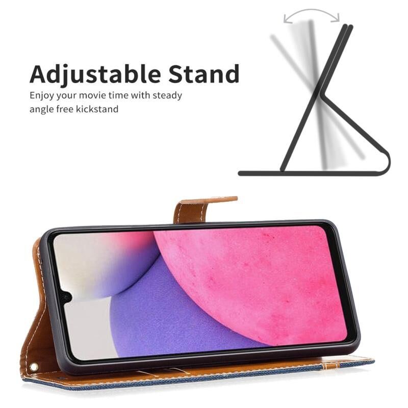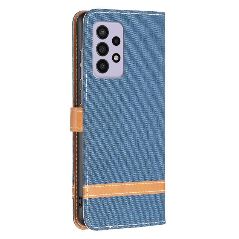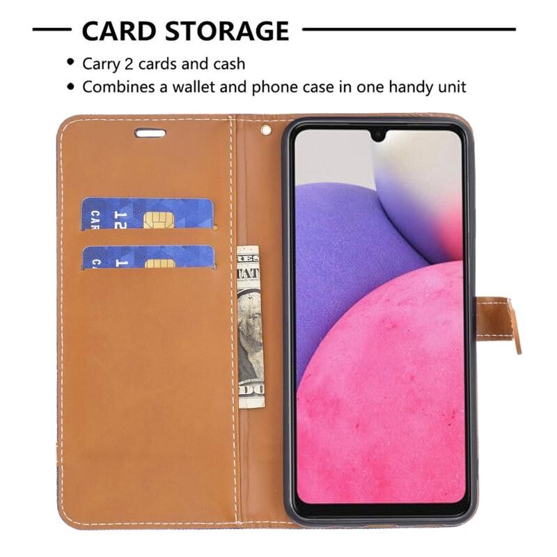 Για το Samsung Galaxy A33 5G χρώμα ταιριάζει Denim υφή δερμάτινη θήκη τηλεφώνου (σκούρο μπλε)