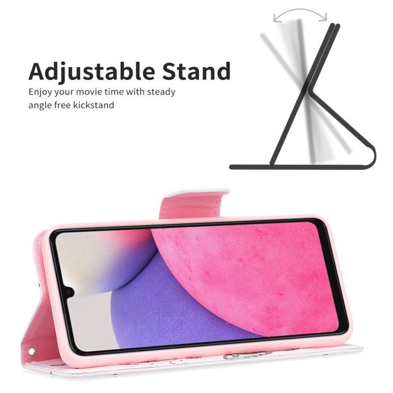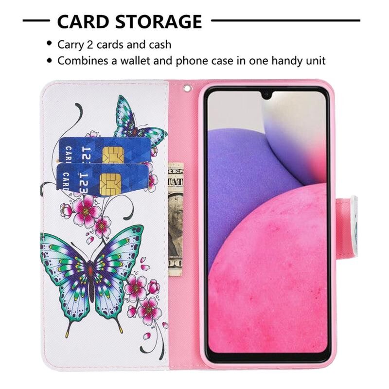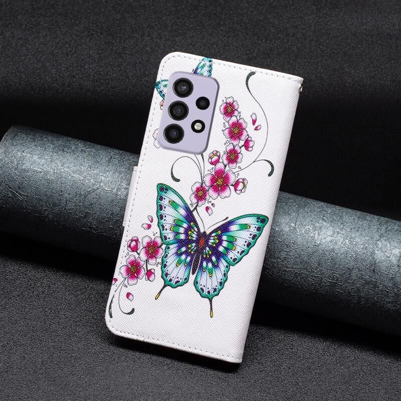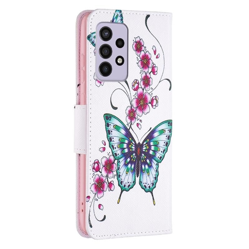 Θήκη τηλεφώνου από δέρμα με σχέδια και χρώματα για Samsung Galaxy A33 5G (Πεταλούδα με άνθη ροδακινιάς)