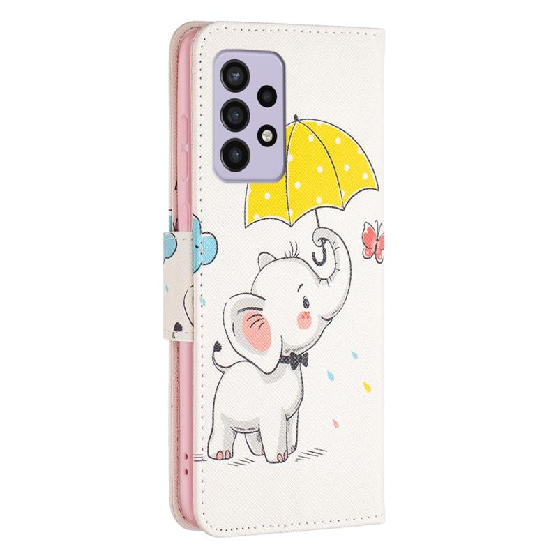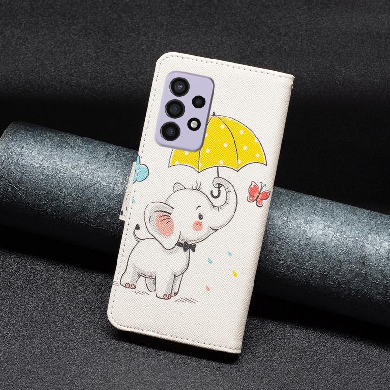 For Samsung Galaxy A33 5G Colored Drawing Leather Phone Case(Umbrella Elephant)