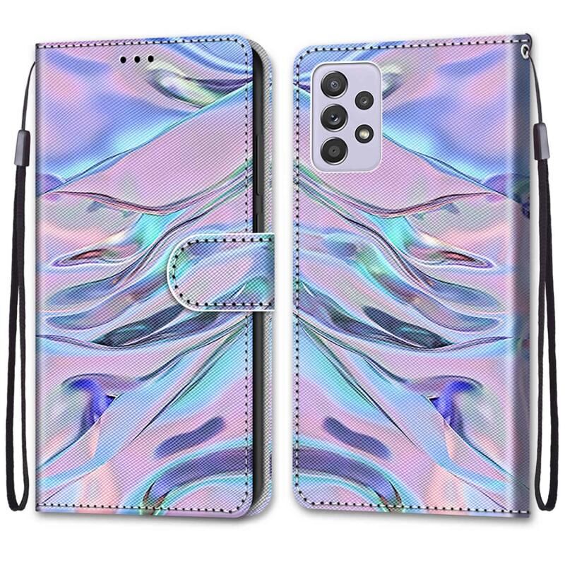 Θήκη τηλεφώνου Samsung Galaxy A33 5G από δέρμα PU με οριζόντιο άνοιγμα, ανάγλυφη υφή, πολύχρωμο σχέδιο (φθορίζον μοτίβο νερού) με βάση για στήριξη, θήκες για κάρτες, πορτοφόλι και κορδόνι. (Κόκκινο)