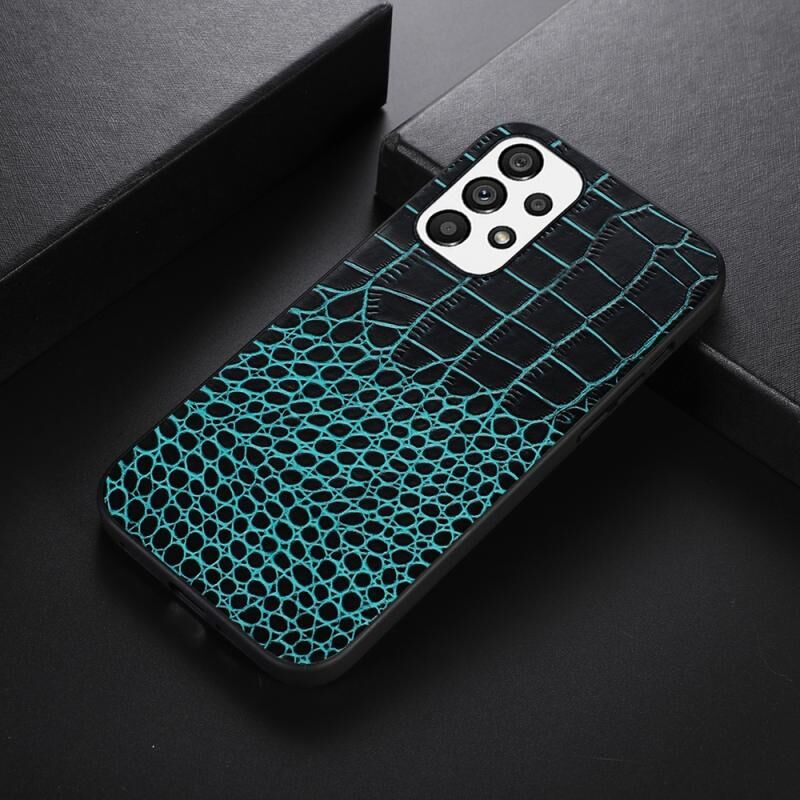 Θήκη δέρματος αγελάδας με επένδυση από δέρμα κροκόδειλου για Samsung Galaxy A33 5G (Κυανό)