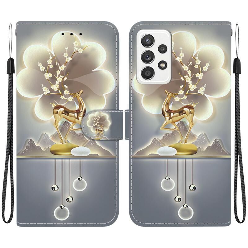 Θήκη τηλεφώνου Samsung Galaxy A33 5G από δέρμα με πολύχρωμη σχεδίαση κρυστάλλινης υφής (Ελάφι Σίκα)