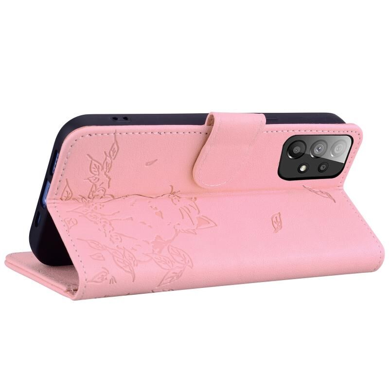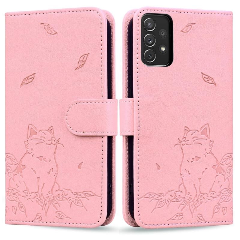 Θήκη τηλεφώνου από δέρμα με ανάγλυφο γατάκι για Samsung Galaxy A33 5G (ρόζ)