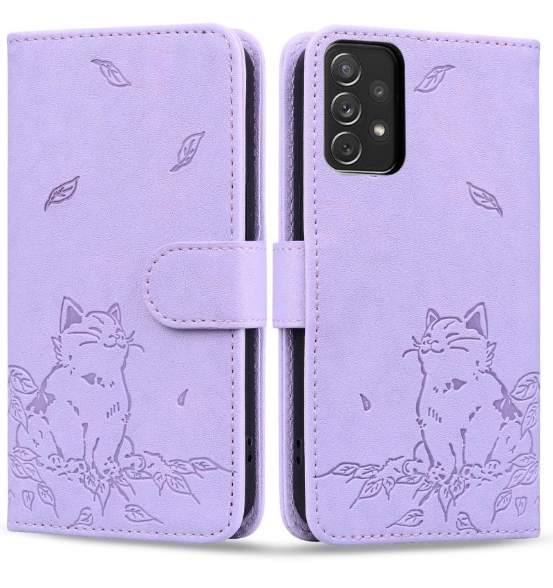 For Samsung Galaxy A33 5G Cute Cat Embossed Leather Phone Case(Purple)