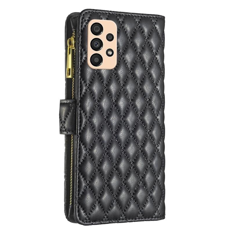 Θήκη τηλεφώνου Samsung Galaxy A33 5G, Δερμάτινη θήκη τύπου πορτοφολιού με φερμουάρ και διαμαντένιο πλέγμα (Μαύρο)