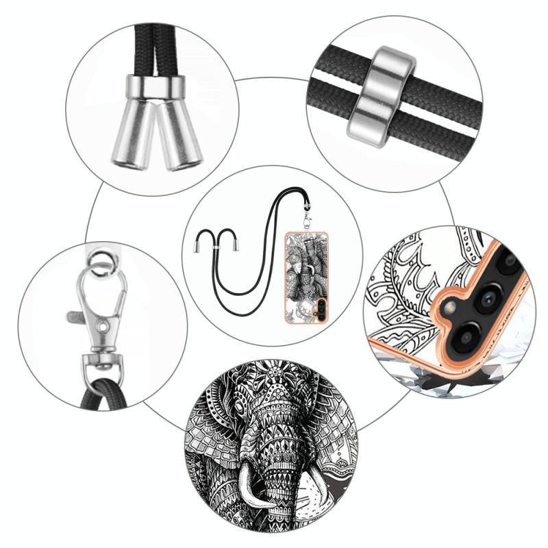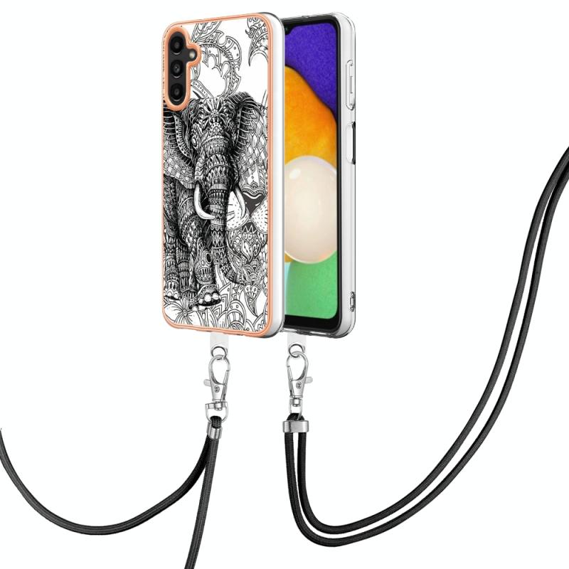 For Samsung Galaxy A33 5G Electroplating Dual-side IMD Phone Case with Lanyard(Totem Elephant)