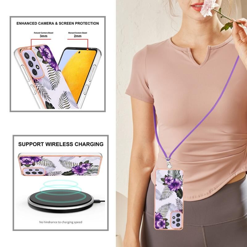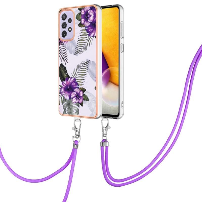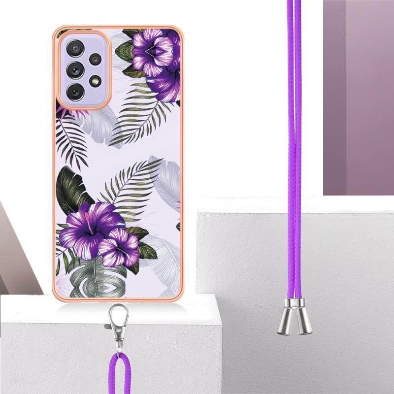Θήκη κινητού τηλεφώνου Samsung Galaxy A33 5G με επιμετάλλωση IMD TPU με κορδόνι (Μωβ Λουλούδι)