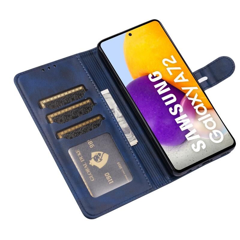 Για Samsung Galaxy A33 5G ανάγλυφο Happy Cat μοτίβο δερμάτινη θήκη τηλεφώνου (μπλε)