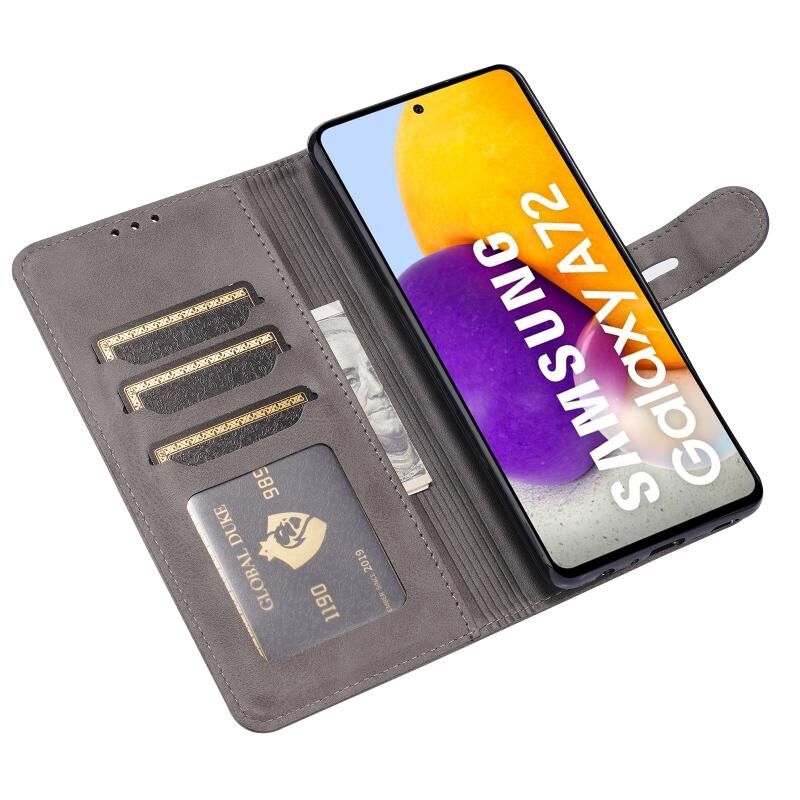 Για Samsung Galaxy A33 5G ανάγλυφο Happy Cat μοτίβο δερμάτινη θήκη τηλεφώνου (Γκρι)