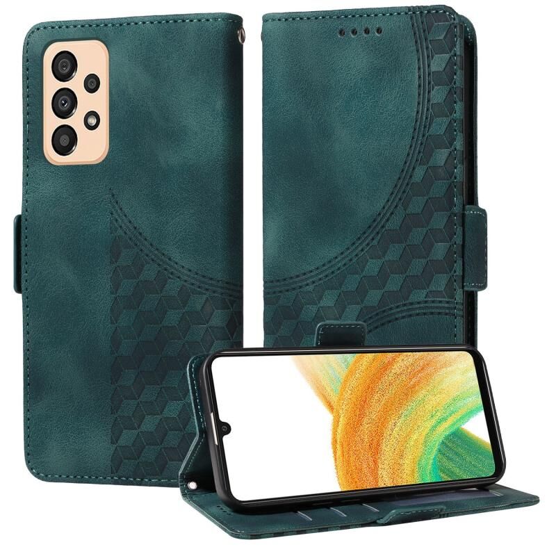 Για Samsung Galaxy A33 5G ανάγλυφο ρόμβος αστερόεσσα δερμάτινη θήκη τηλεφώνου (πράσινο)