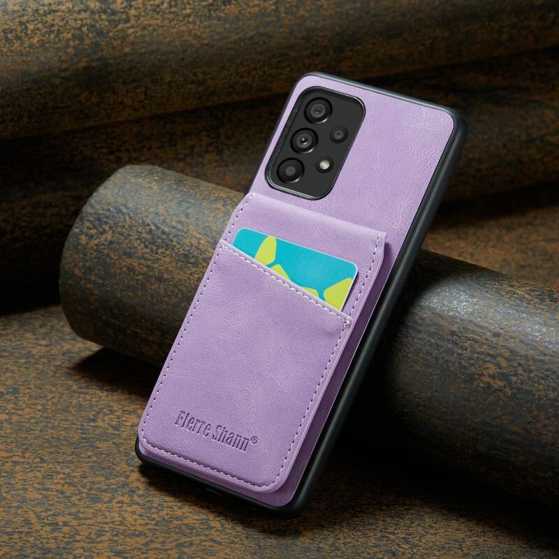 Για Samsung Galaxy A33 5G Fierre Shann Crazy Horse κάρτα κάτοχος κάτοχος πίσω κάλυμμα PU υπόθεση τηλεφώνου (μωβ) (FIERRE SHANN)