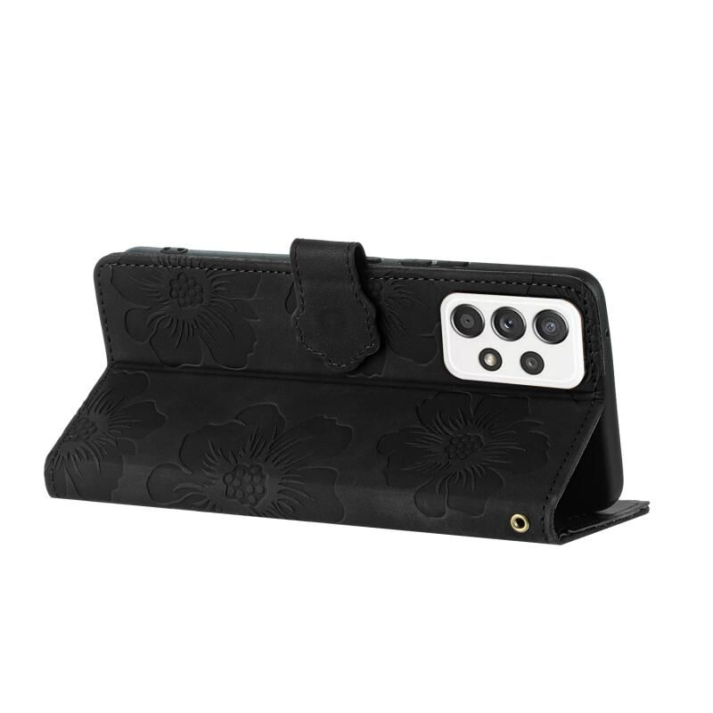Για Samsung Galaxy A33 5G λουλούδι ανάγλυφο μοτίβο δερμάτινη θήκη τηλεφώνου (μαύρο)
