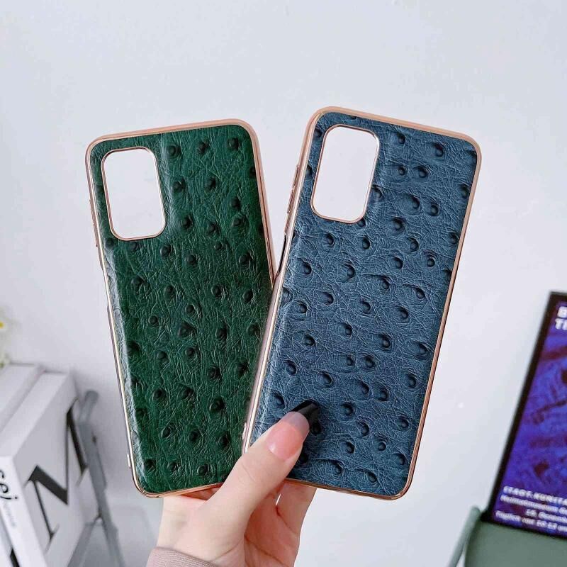 Θήκη τηλεφώνου Samsung Galaxy A33 5G από γνήσιο δέρμα με υφή στρουθοκάμπου, σειρά νανο-επίχρυσης (Πράσινο)