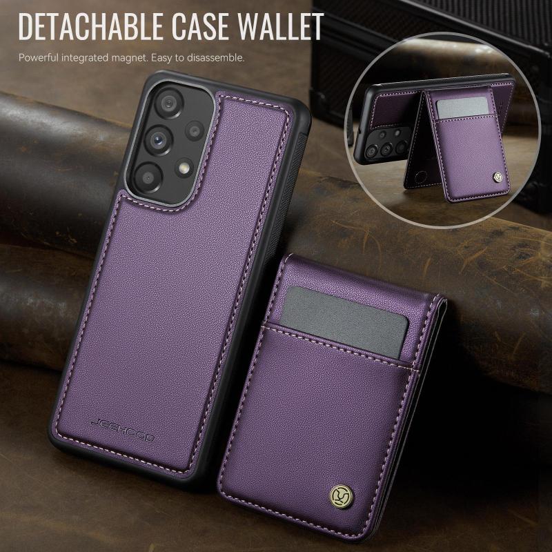 For Samsung Galaxy A33 5G JEEHOOD J06 British Style RFID MagSafe Card Bag PU Phone Case(Purple) (JEEHOOD)
