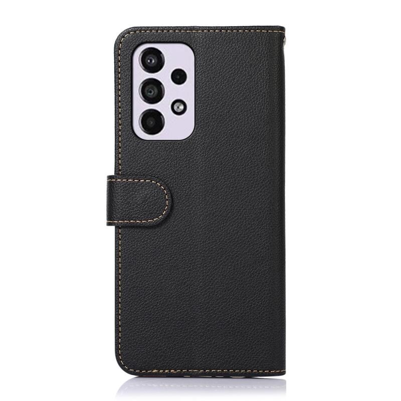 Θήκη κινητού Samsung Galaxy A33 5G KHAZNEH με δέρμα υφής λυτσί και προστασία RFID (Μαύρο)
