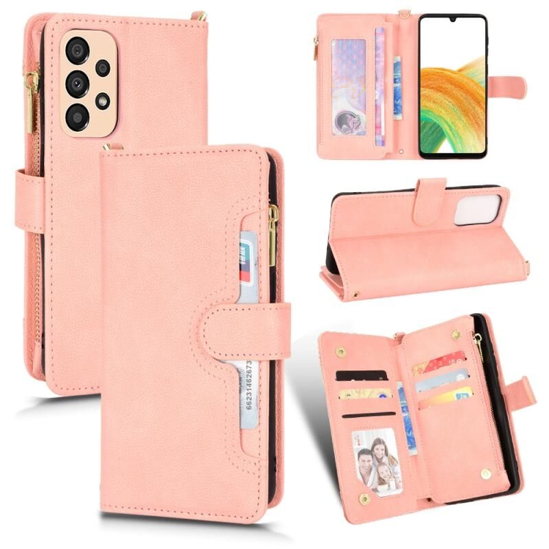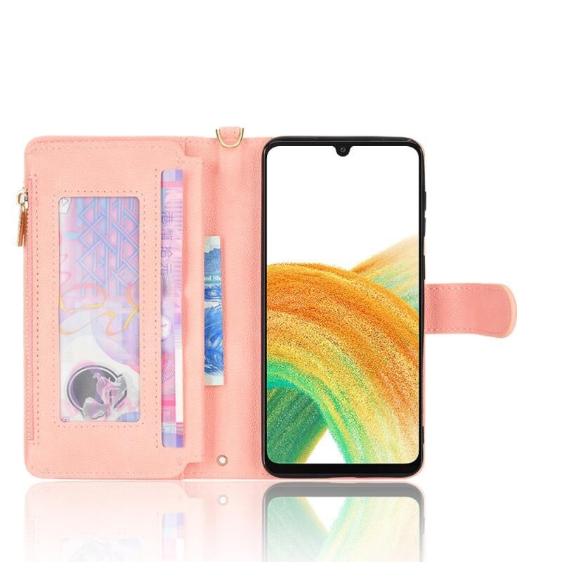 Για Samsung Galaxy A33 5G Litchi υφή φερμουάρ δερμάτινη θήκη τηλεφώνου (ρόζ)