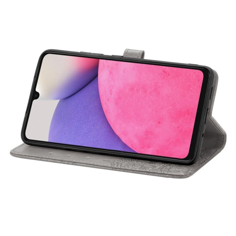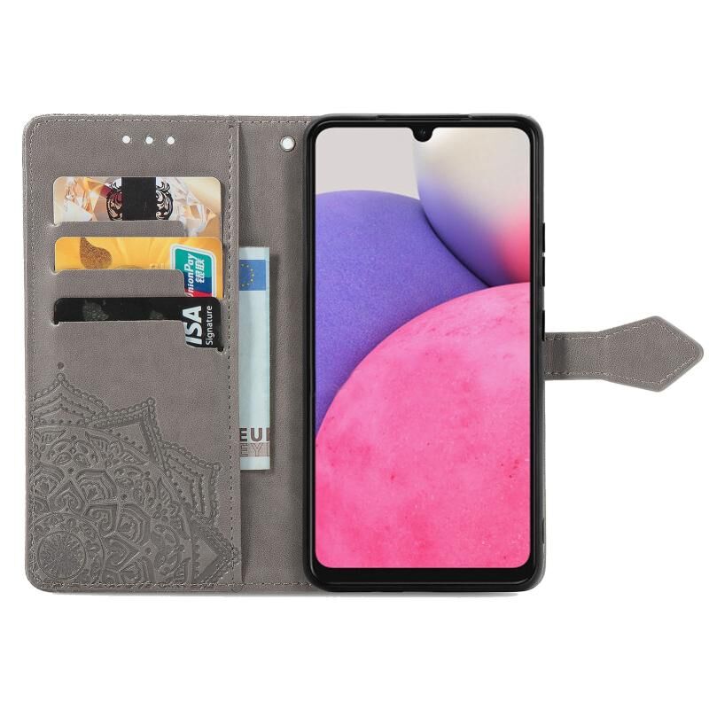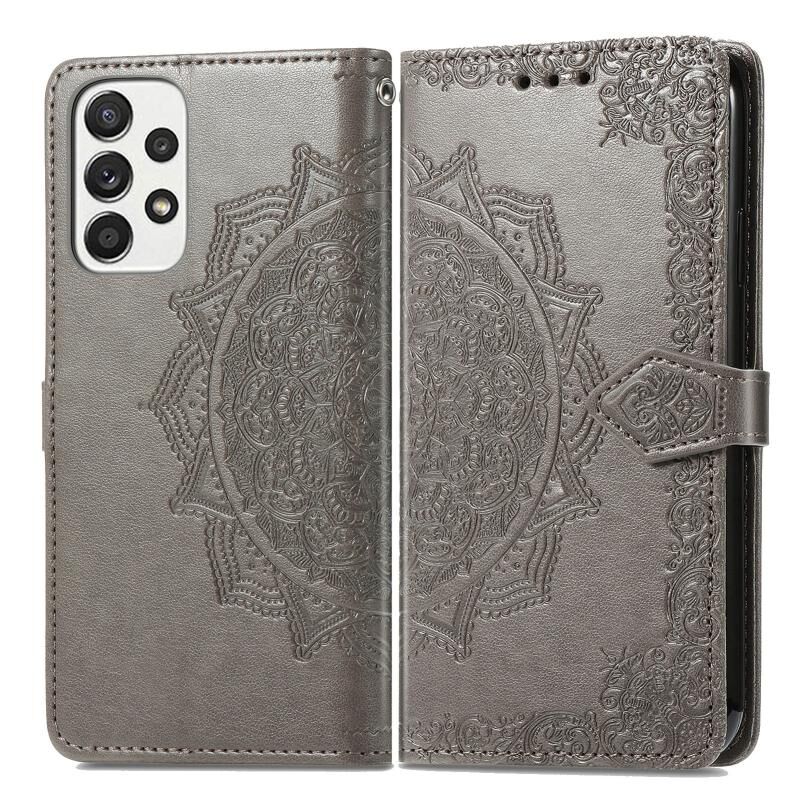 Για Samsung Galaxy A33 5G Mandala λουλούδι ανάγλυφη δερμάτινη θήκη (γκρι)
