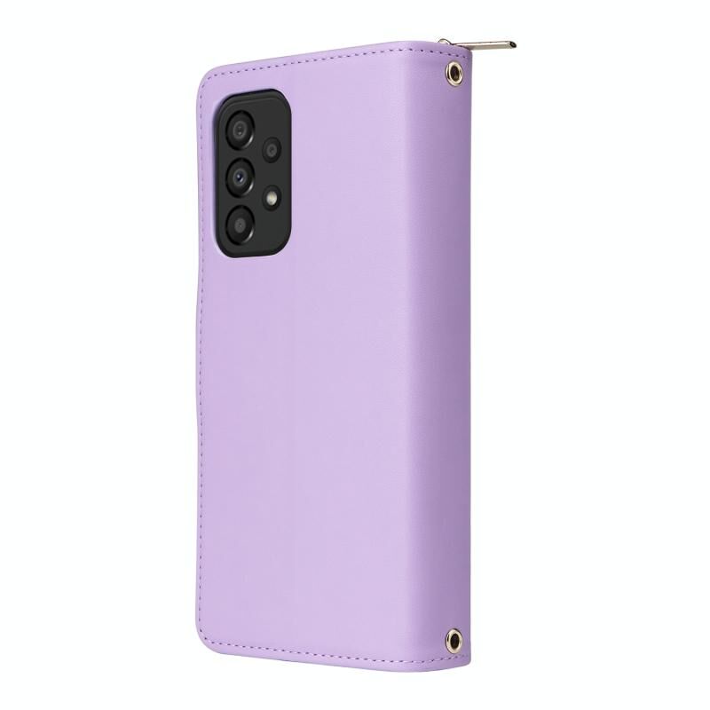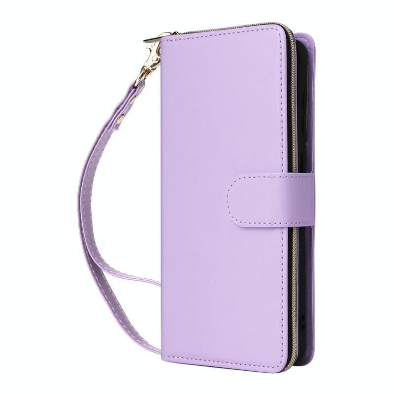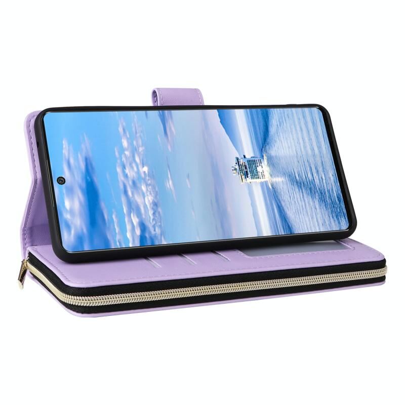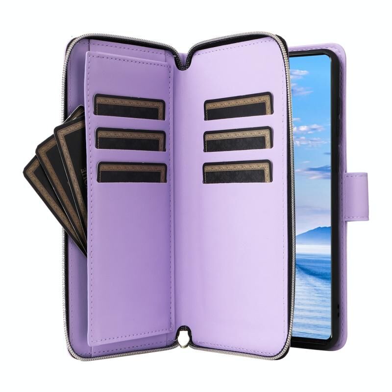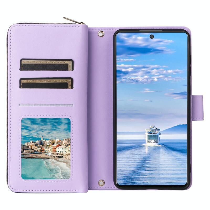 Για Samsung Galaxy A33 5G εννέα-κάρτα Slots φερμουάρ πορτοφόλι τσάντα δερμάτινη θήκη τηλεφώνου (μωβ)
