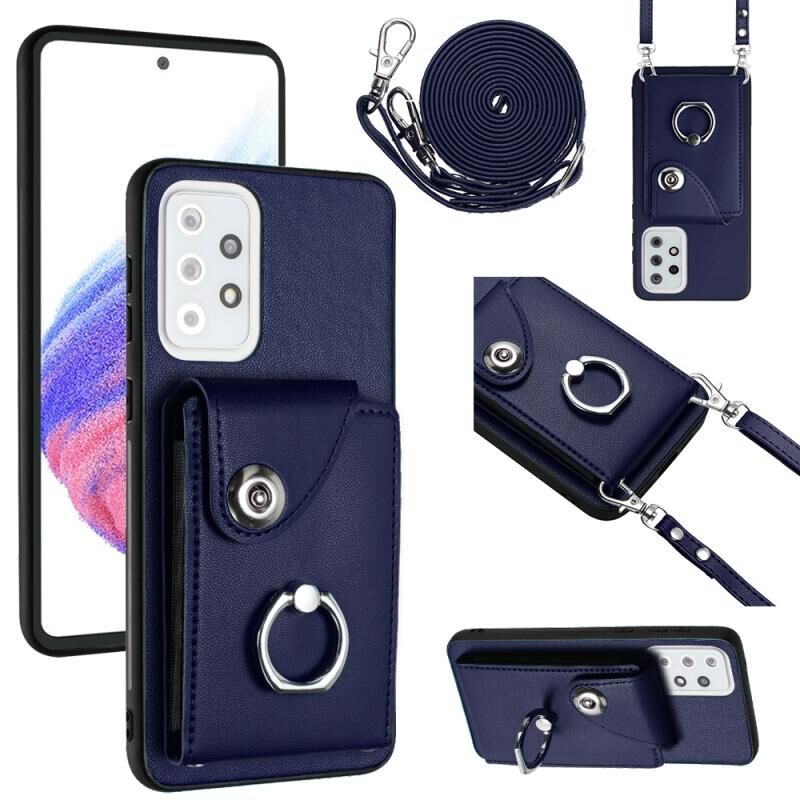 Για Samsung Galaxy A33 5G Οργανική κάρτα τσάντα τσάντα δαχτυλίδι κάτοχος θήκη τηλεφώνου με μακρύ κορδόνι (Μπλε)