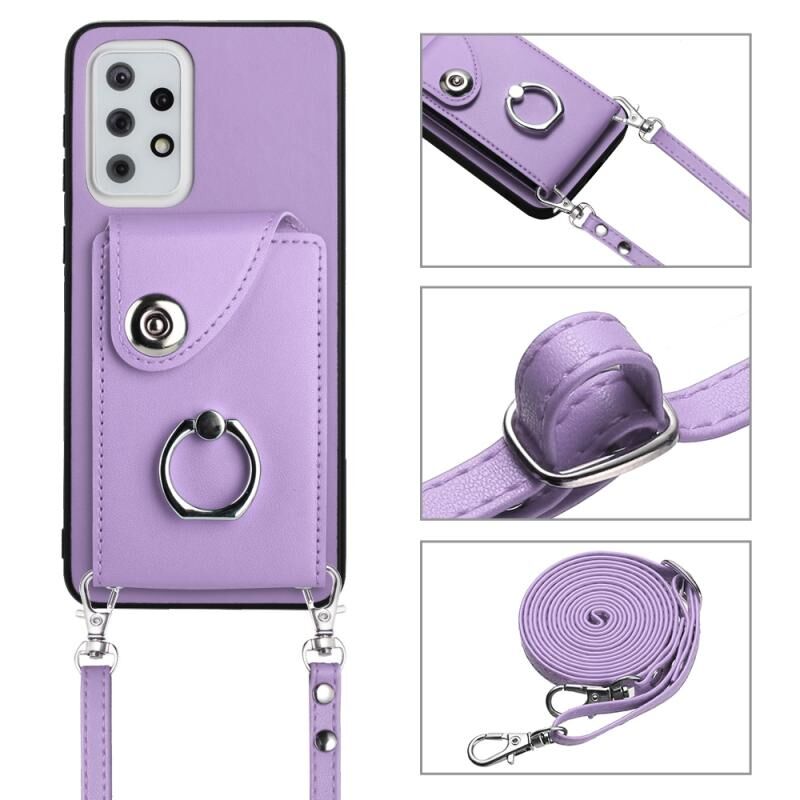 Για Samsung Galaxy A33 5G Οργανική κάρτα τσάντα τσάντα δαχτυλίδι κάτοχος υπόθεση τηλεφώνου με μακρύ κορδόνι (μωβ)