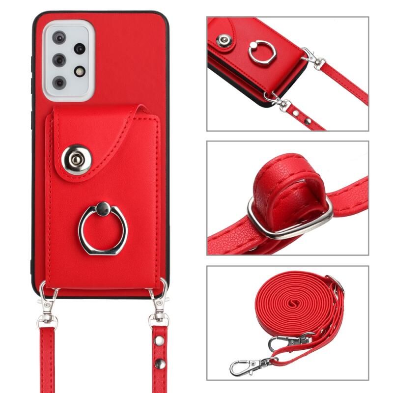 Για Samsung Galaxy A33 5G Οργανική κάρτα τσάντα τσάντα δαχτυλίδι κάτοχος θήκη τηλεφώνου με μακρύ κορδόνι (Κόκκινο)